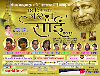 Sunday 18th December 2011, Sai MahaKubh, a huge event dedicated to Shirdi Sai Baba will happen in New Delhi. On this occasion many famous artist and singer like Pramod Mehdiji (Sai Baba aarti), Sonu Nigam, Gurdas Maan, Vikram Hazra, Hamsar Hayat will be performing songs dedicated to the divine.